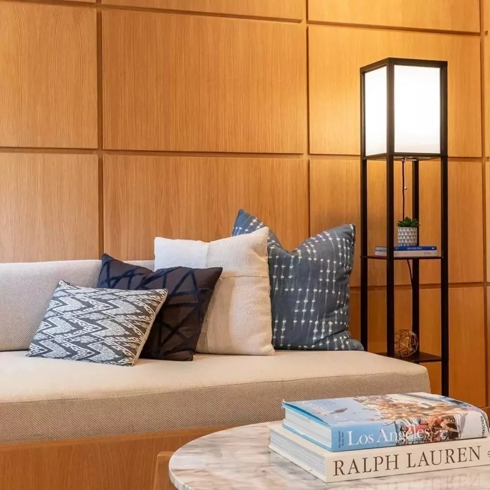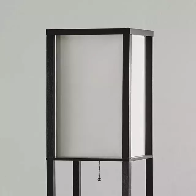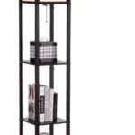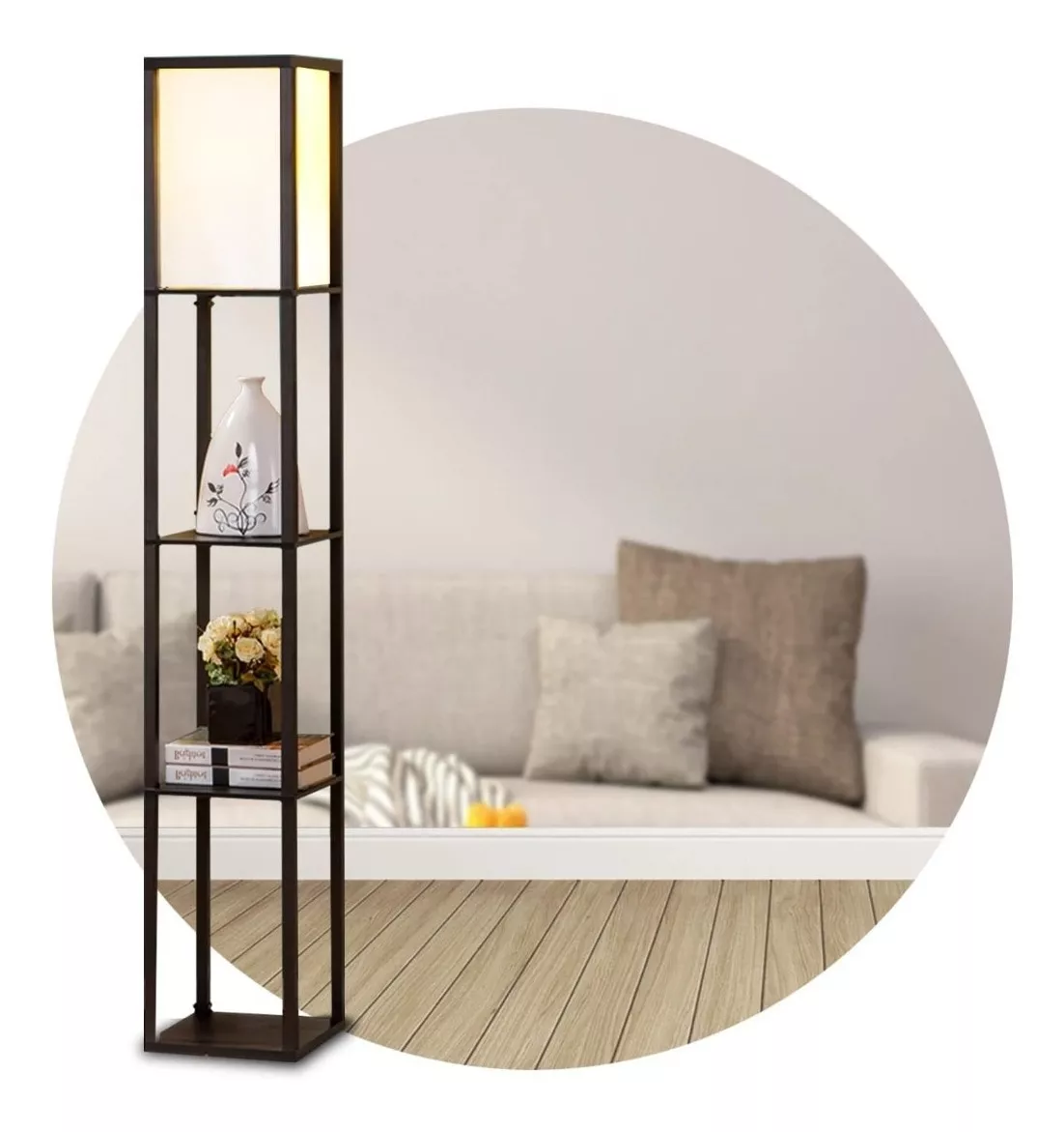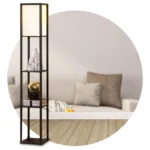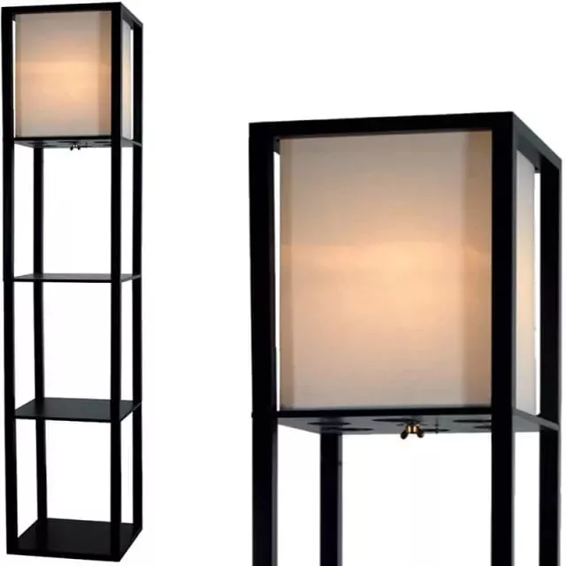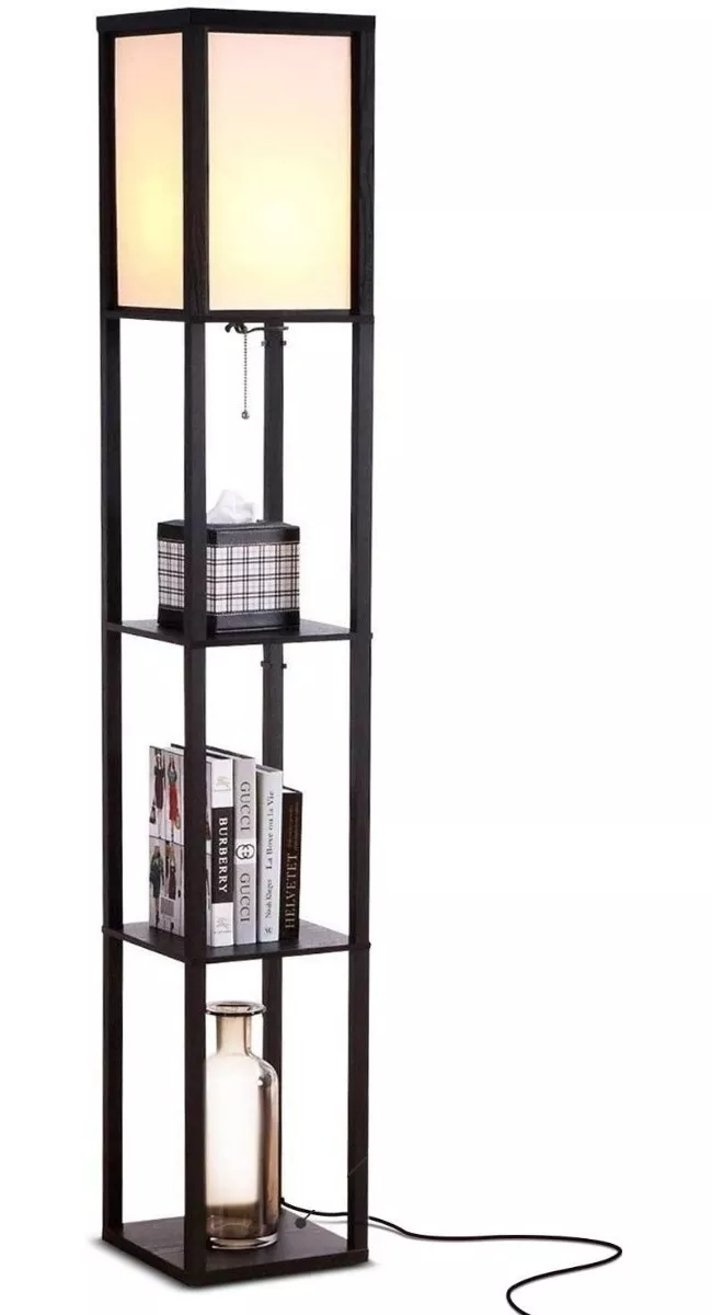 Lampara de pie repisa con 3 estantes en madera y lonja sintética