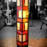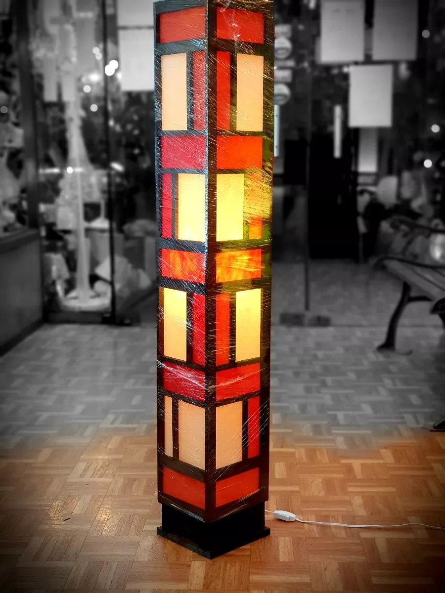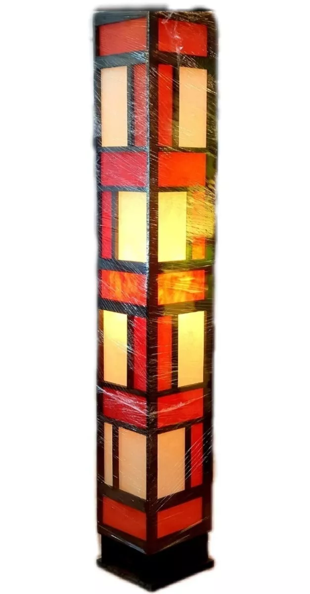 Lampara portátil de pie – Pantalla de lonja sintética estilo artesanal